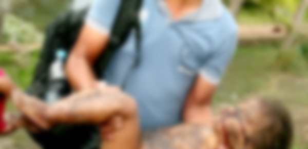 | Criança que sobreviveu sendo socorrida |