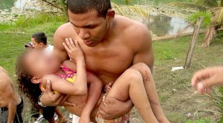 | Criança que sobreviveu sendo socorrida |