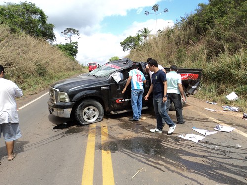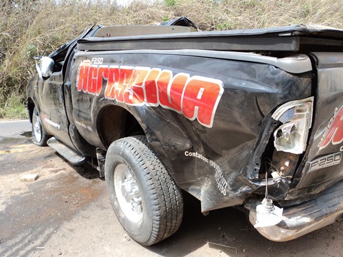Açailandia – Na manhã desta sexta feira 05/08, por volta das 11:00h, a Pik-Up F250 Agressiva que trabalha animando festas, tombou na BR 222 em Açailândia, o acidente ocorreu a cerca de 2 quilometros do distrito de Pequiá.