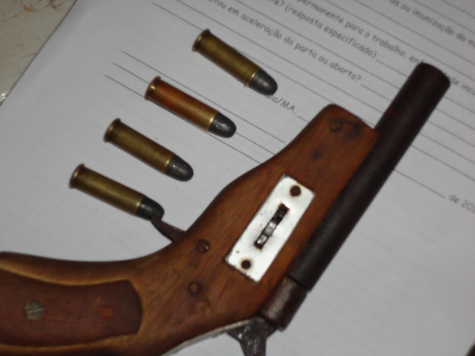Com ele os policiais Militares encontram uma arma tipo garruncha de fabricação caseira e quatro munições de revolver calibre 38 intactas, que seriam usadas na arma.