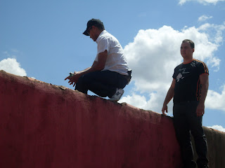 | Policiais em cima do muro no momento da invasão |