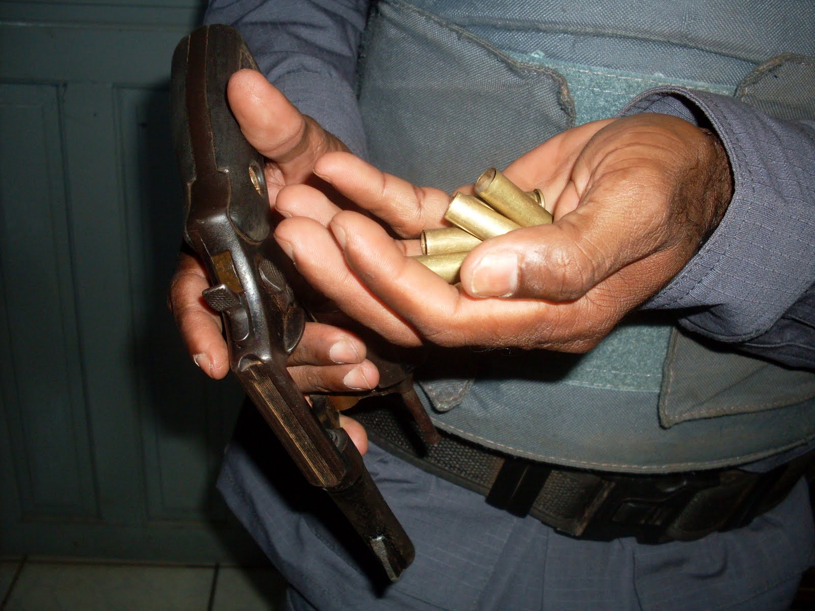 | Arma e cartuchos deflagrados |